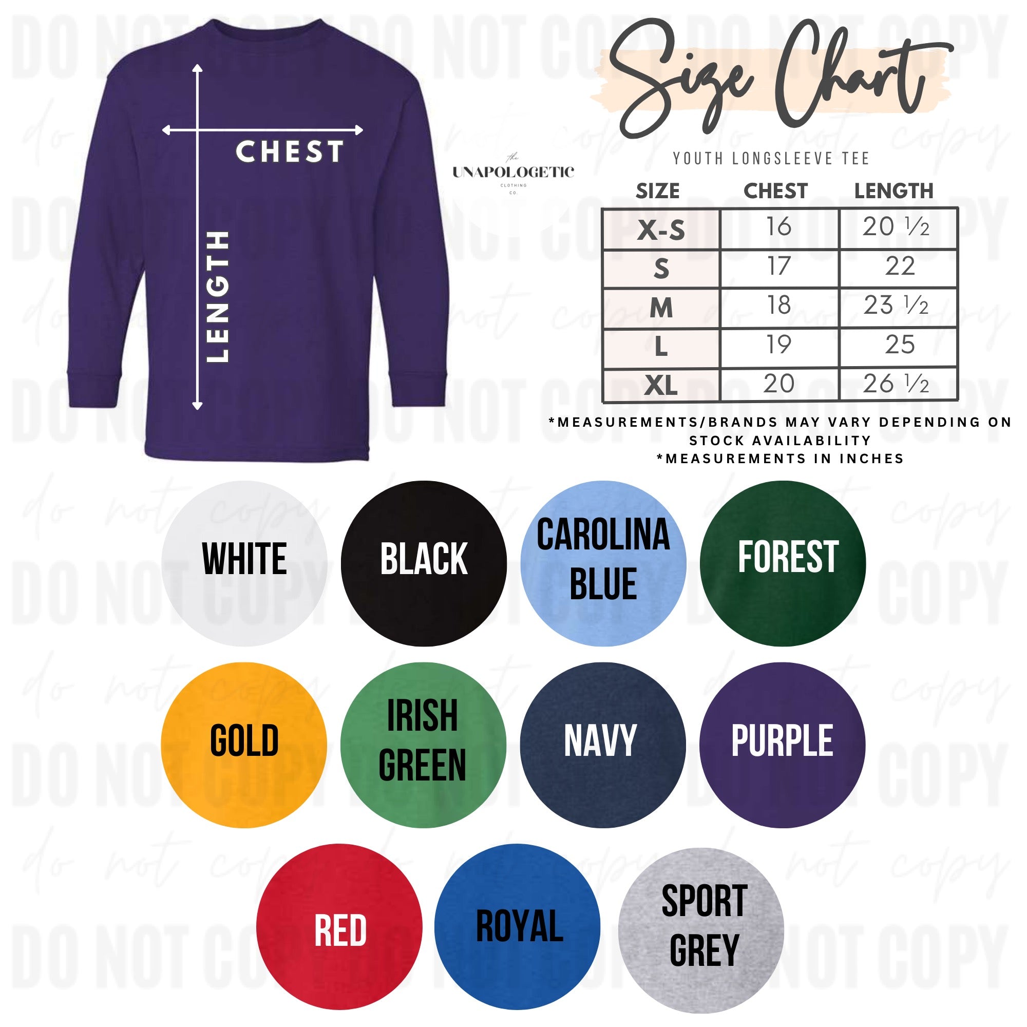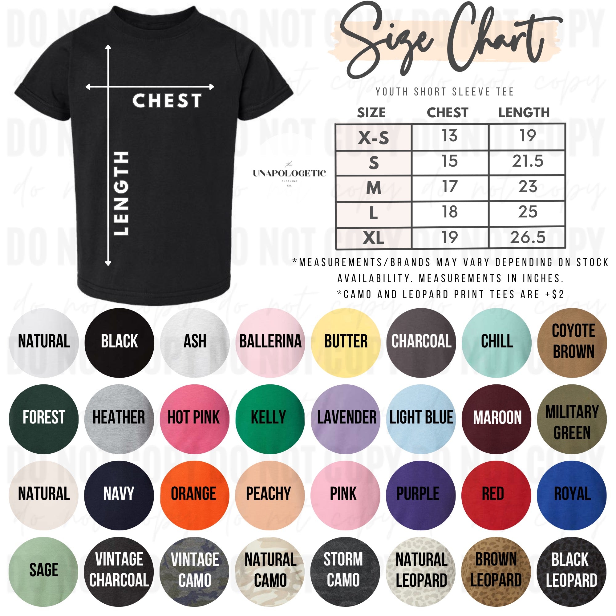• It is important to take into consideration the color of the design you’d like when choosing a shirt color. The design will NOT be modified under any circumstances.