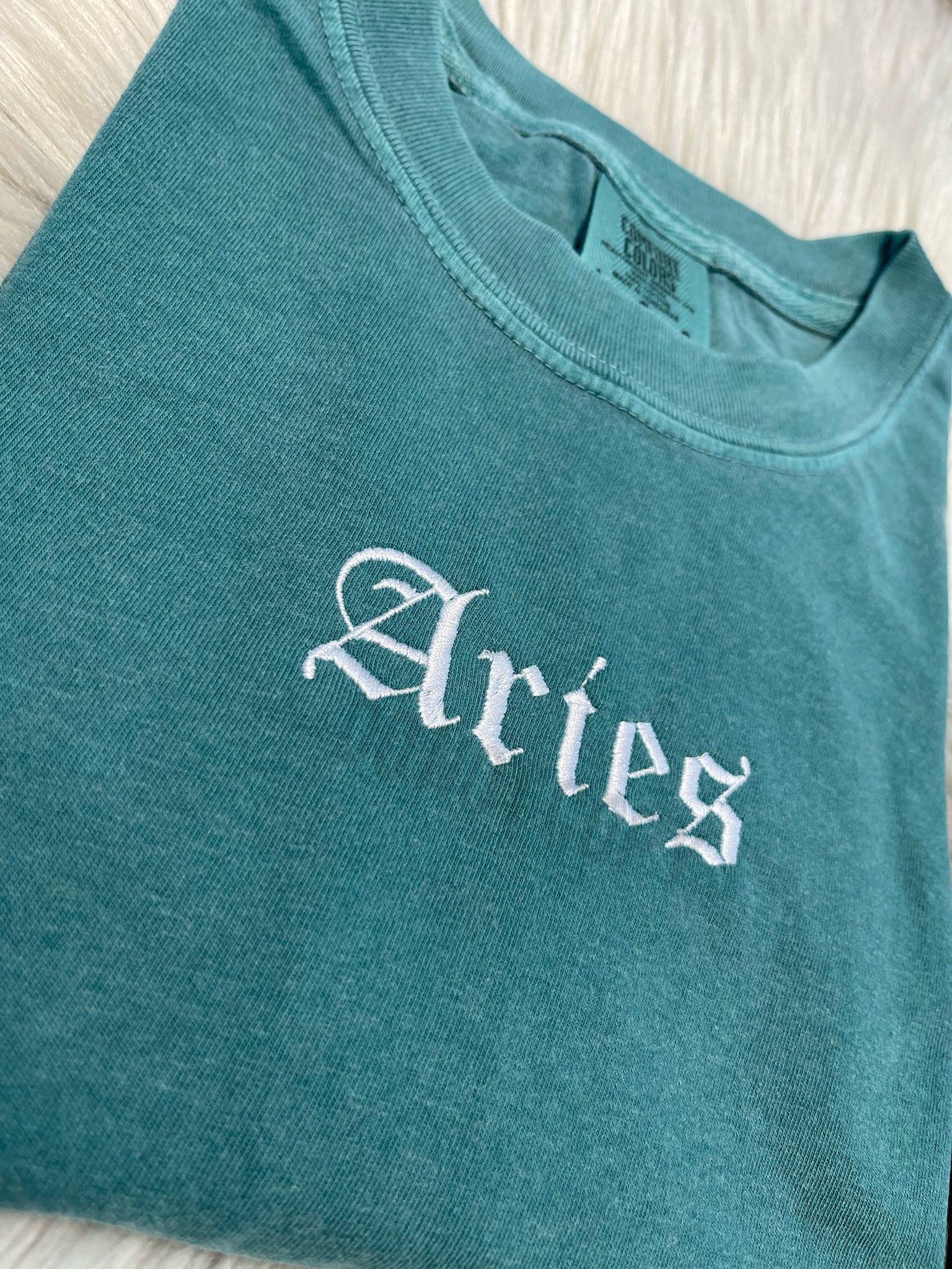 - Embroidered. Roughly 1.5 inches tall, length with vary between each zodiac sign due to the difference in the amount of letters they may contain.